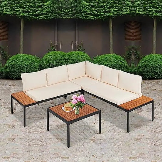 Patio Furniture 4-Piece Acacia Patio Sofa