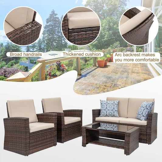 Patio Furniture 4 Piece Set, Wicker Rattan Sectional Sofa Couch